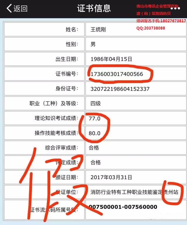 看一下鉴定机构名称和数据上报单位就可以知道。鉴定机构名称如果不是消防行业职业技能鉴定指导中心,数据上报单位不是中国消防协会职业技能鉴定部,就是假的。